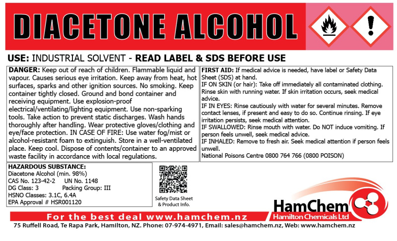 Product Information Downloads (pdf)HamChem SDS - Diacetone Alcohol (Oct '25)