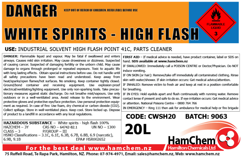 Product Information Downloads (pdf)HamChem SDS - White Spirits High Flash (Nov '25)